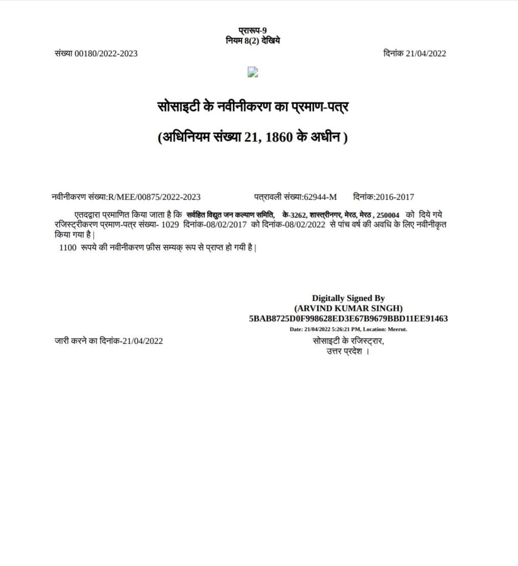 - Registered Address - K-3262, Shastri Nagar, Meerut-250004 (U.P.)